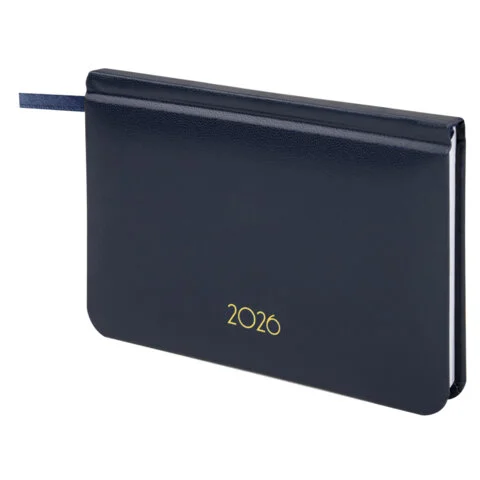 Еженедельник датированный 2026, МАЛЫЙ ФОРМАТ, 95х155 мм, А6, BRAUBERG 'Select', балакрон, темно-сини