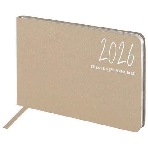 Еженедельник датированный 2026 МАЛЫЙ ФОРМАТ 105х160 мм, А6, BRAUBERG 'Blaze', фольга, бежевый, 11721
