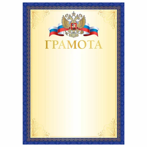 Грамота А4, мелованный картон, синяя рамка с золотом, BRAUBERG, 117533