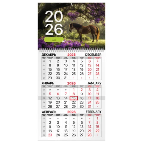 Календарь квартальный на 2026 г., 1 блок, 1 гребень, бегунок, мелованная бумага, BRAUBERG, 'Символ г