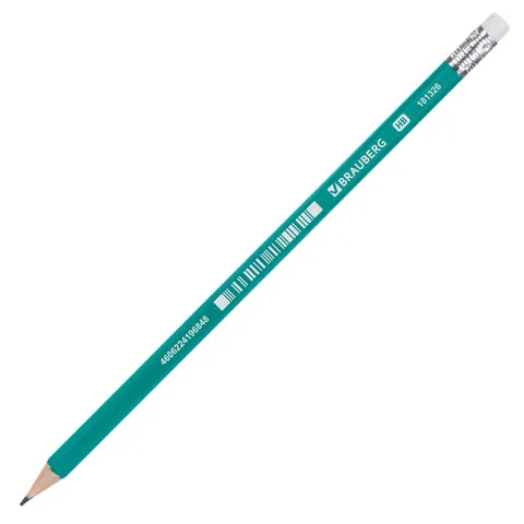 Карандаш чернографитный BRAUBERG, 1 шт., 'Grass', НВ, с резинкой, пластиковый, корпус зеленый, 18132