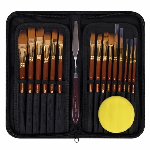 Кисти художественные набор 15 шт. + мастихин в пенале, коричневые, синтетика, BRAUBERG ART DEBUT, 20