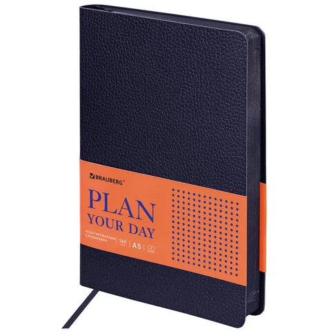 Ежедневник недатированный А5 (138х213 мм) BRAUBERG 'Stylish', кожзам, гибкий, 160 л., темно-синий, 1