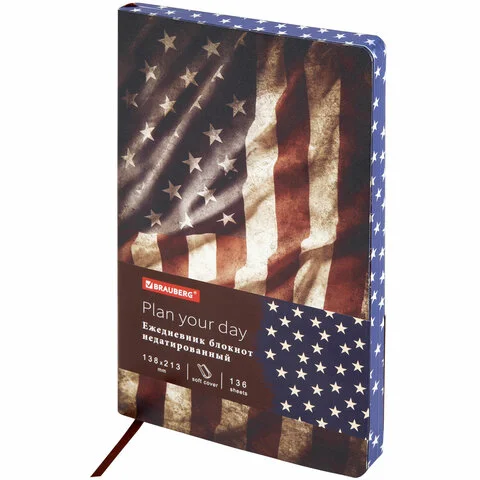 Внутренний блок включает 136 листов белой бумаги плотностью 70 г/м2. Благодаря стандартному формату А5 ежедневник удобно использов...
