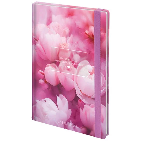Ежедневник недатированный с резинкой А5 145х203 мм, BRAUBERG, твердый, 128 л., 'Peony', 116290