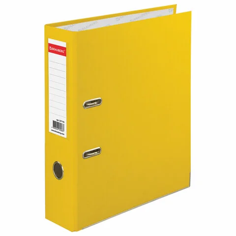 Папка-регистратор BRAUBERG с покрытием из ПВХ, 80 мм, с уголком, желтая (удвоенный срок службы), 227