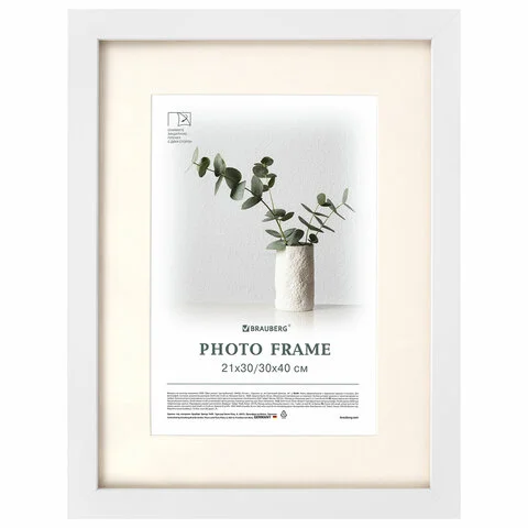 Рамка 30х40 см с паспарту 21х30 см, небьющаяся, багет 26 мм, МДФ, BRAUBERG 'Ambassador', белая, 3913