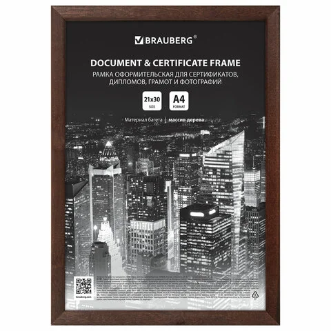 Рамка формата А4 (21х30 см) выполнена из дерева цвета 'грецкий орех', за счет чего отлично впишется в домашний и деловой интерьер....