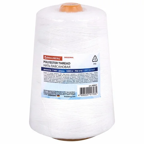 Нить лавсановая для прошивки документов, БЕЛАЯ, диаметр 1 мм, длина 1000 м, ЛШ 210, BRAUBERG, 601578