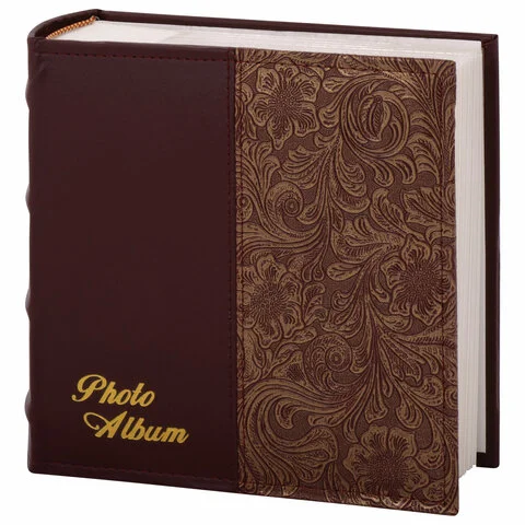 Фотоальбом BRAUBERG на 300 фотографий 10х15 см, обложка под кожу, бумажные страницы, бокс, бордо+бро