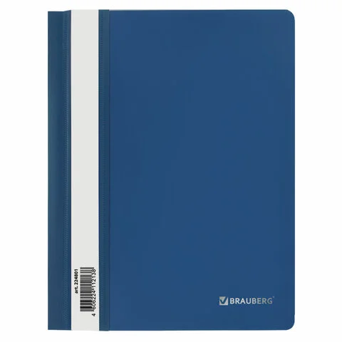 Скоросшиватель пластиковый BRAUBERG, А4, 130/180 мкм, синий, 220385