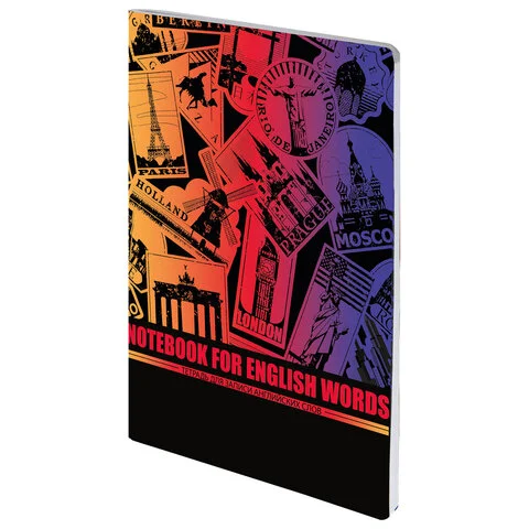 Тетрадь-словарь для записи английских слов, А5, 60 л., КОЖЗАМ, сшивка, клетка, 'World', BRAUBERG, 40