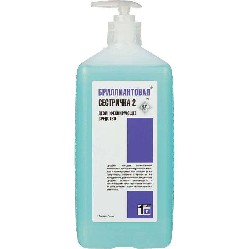 Мыло жидкое дезинфицирующее, 1 л, БРИЛЛИАНТОВАЯ СЕСТРИЧКА-2, гипоаллергенное, дозатор