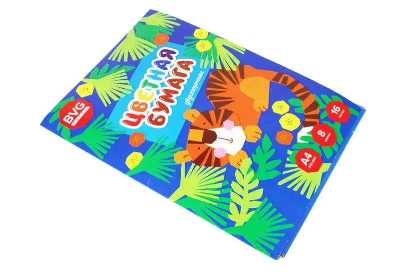 Цветная бумага Bvg 8 цветов, А4, 16 листов, Тигр