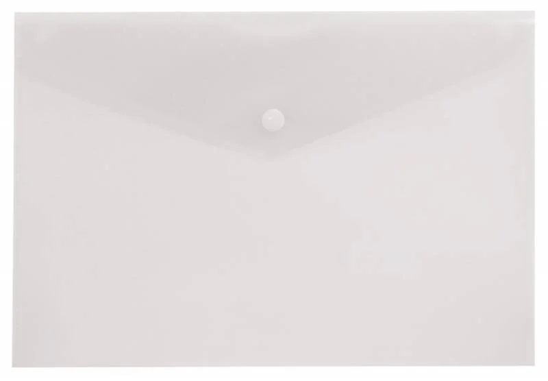 Конверт с кнопкой прозрачный. Формат А4. Выполнен из полипропилена толщиной 0,10мм. Фактура с тиснением. Цвет ассорти.