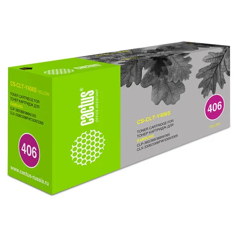 Картридж лазерный CACTUS (CS-CLT-Y406S) для SAMSUNG CLP-365/365W, желтый, ресурс 1000 стр.