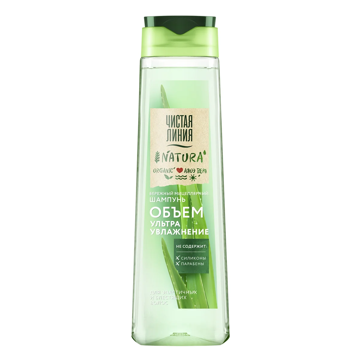 Шампунь Чистая Линия Natura Объем Ультраувлажнение для эластичных и блестящих волос, 400мл