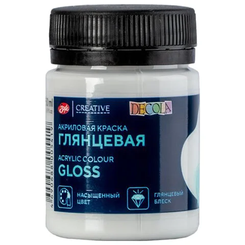 Краска акриловая глянцевая 'Декола', банка 50 мл, белая, Невская Палитра, 2928104
