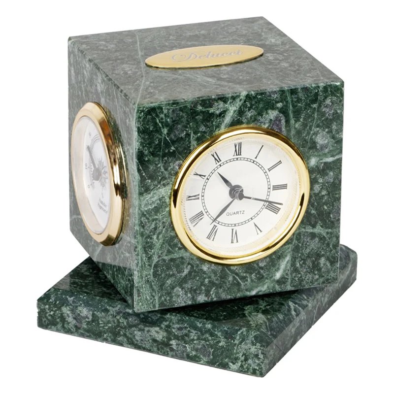 Куб вращающийся Delucci с часами, термометром, гигрометром, зеленый мрамор