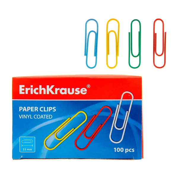 Скрепки канцелярские Erich Krause 33мм, цветные, 100шт/уп, 24872