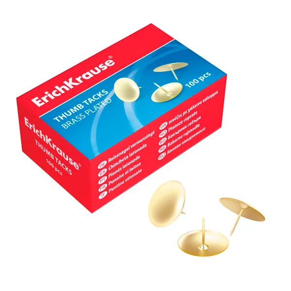 Кнопки канцелярские Erich Krause золото, 100шт/уп, 24875