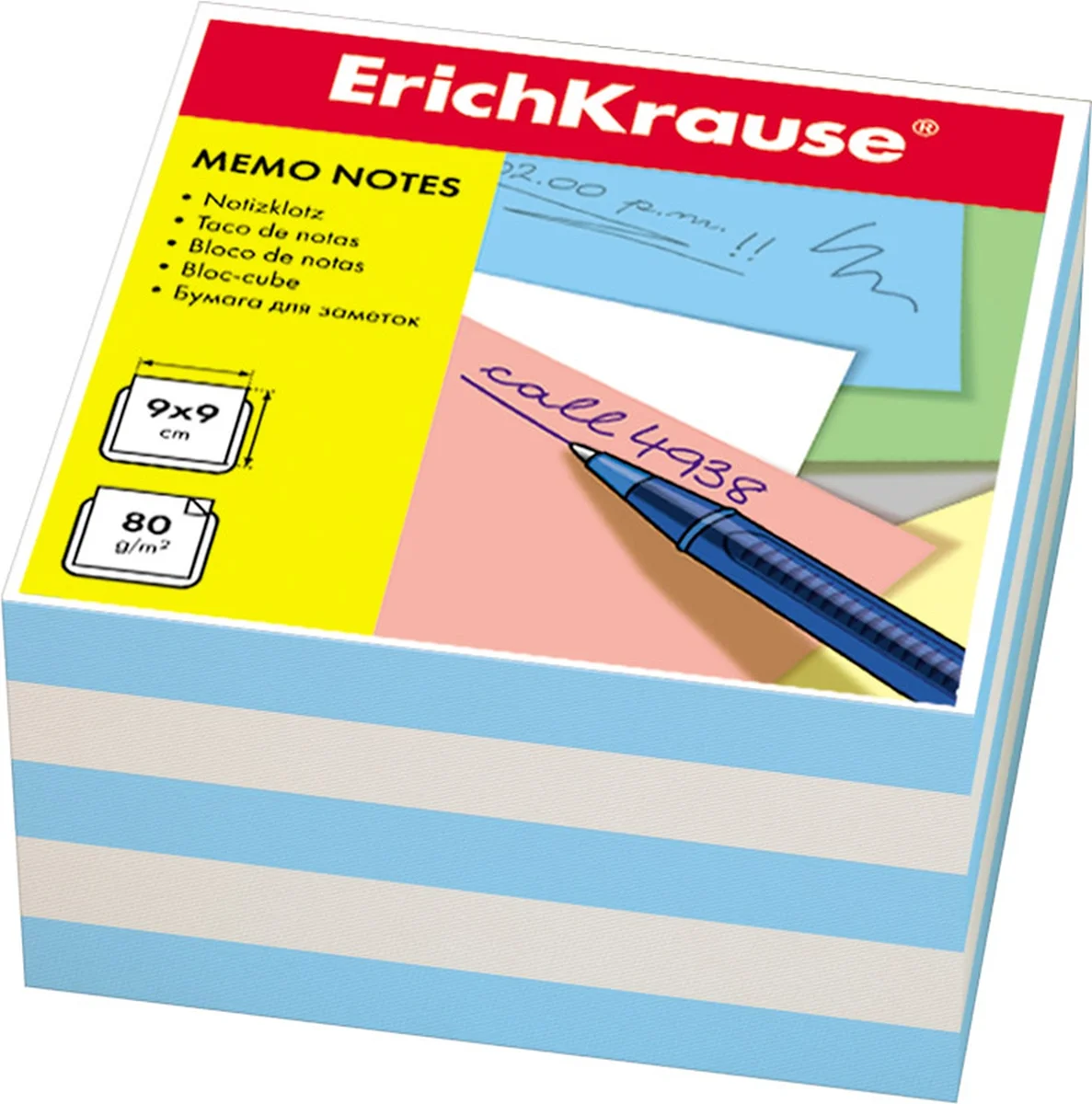 Блок для записей непроклеенный Erich Krause голубой с белым, 90х90х50мм, 2723