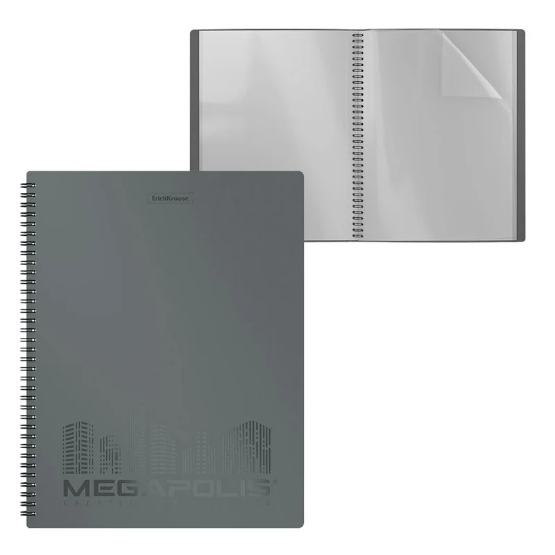 Папка демонстрационная на 40 карманов ErichKrause MEGAPOLIS, A4, серый на спирали