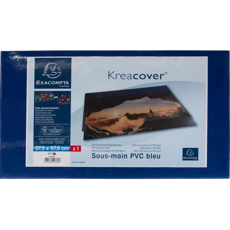 Коврик на стол Exacompta 57,5х37,5см синий с прозрачным листом 29782E