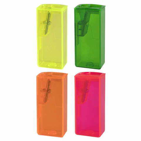 Точилка FABER-CASTELL, с контейнером, прямоугольная, пластиковая, детали флуоресцентные, ассорти, 58