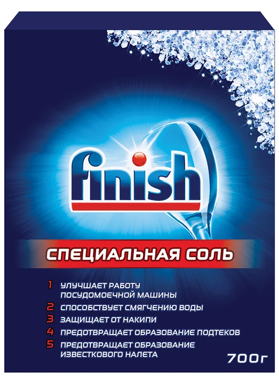 Специальная гранулированная соль Finish для защиты вашей посудомоечной машины от накипи и известкового налета. Для лучшей работы п...
