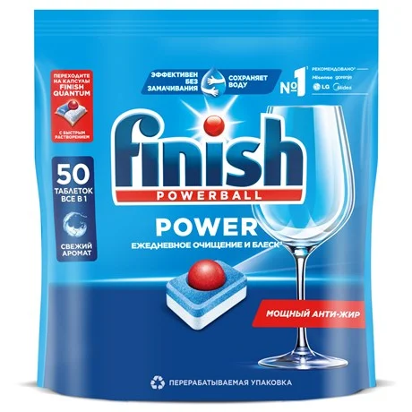 Таблетки для посудомоечных машин Finish Power (50 штук в упаковке) Назначение: Finish Power All in 1 —...