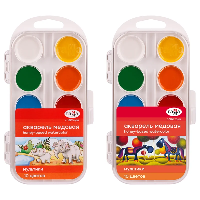 Акварель Гамма 'Мультики' NEW, медовая, 10 цветов, без кисти, пластик. упак., европодвес