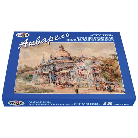 Краски акварельные художественные ГАММА 'Студия', 18 цветов, кювета 2,5 мл, картонная коробка, 21500