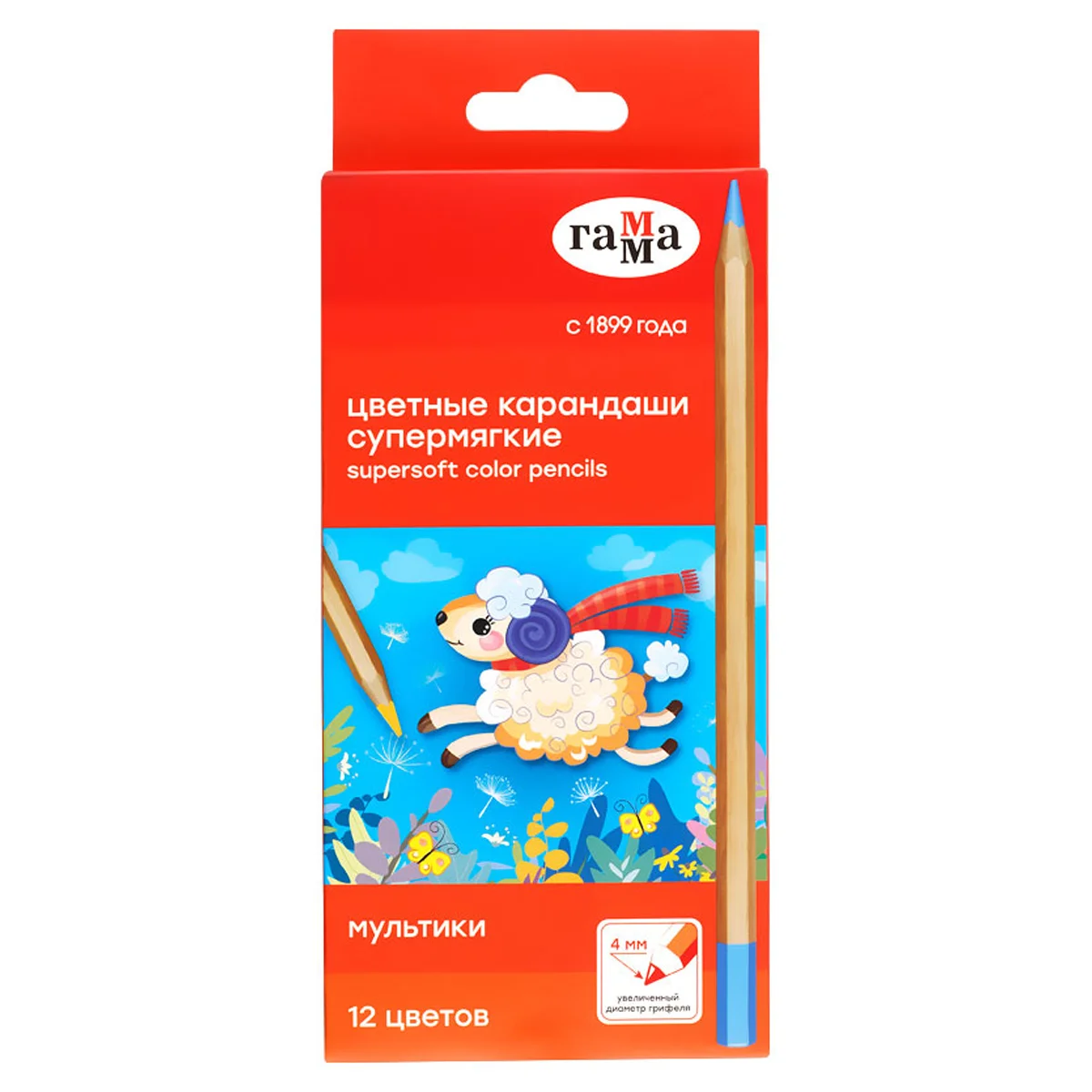 Карандаши цветные Гамма 'Мультики', 12цв., супермягкие, увелич. диаметр грифеля 4,0мм, заточен., кар