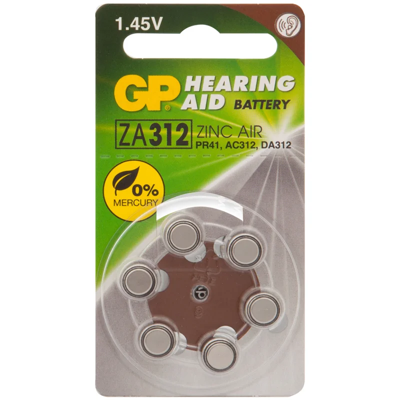Батарейка GP ZA31F (PR41, AC312, AC312E, DA312, V312A) воздушно-цинковая, 6шт/уп