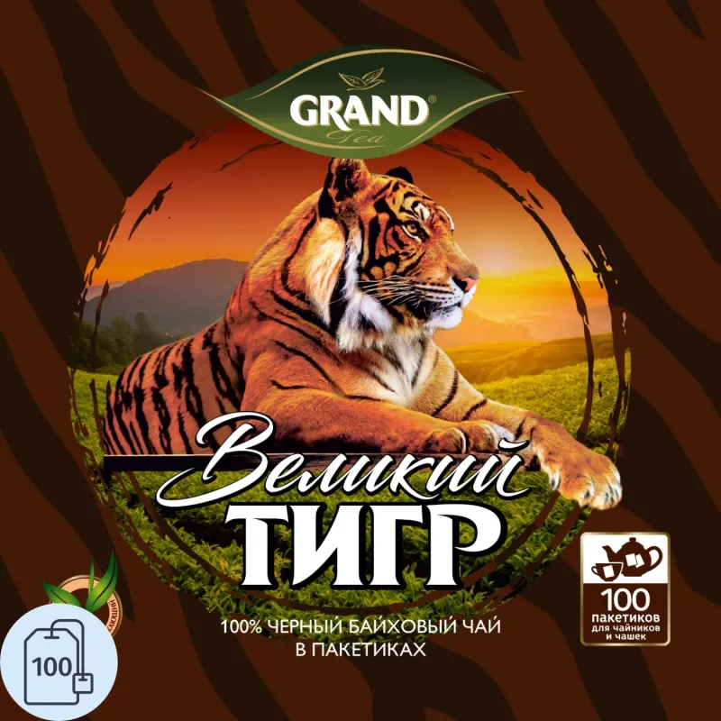 Чай «Великий Тигр Отборный» черный 100 пакетиков — индийский черный байховый чай, созданный для ежедневных ...