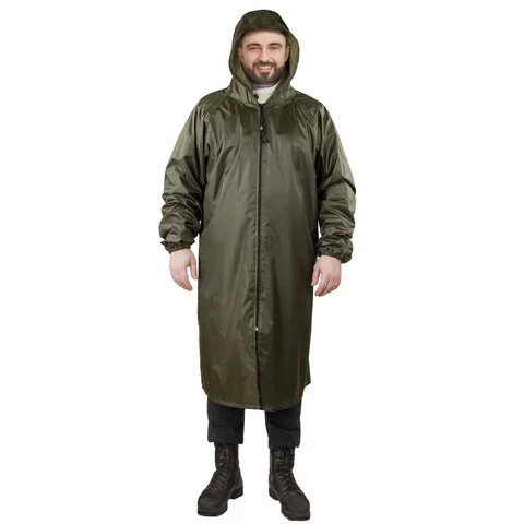 Дождевик-плащ цвета хаки на молнии многоразовый с ПВХ-покрытием, размер 60-62 (XXXL), рост 170-176