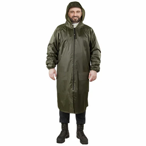 Дождевик-плащ хаки С КАРМАНАМИ многоразовый на молнии, размер 52-54, рост 170-176, ГРАНДМАСТЕР, 6108