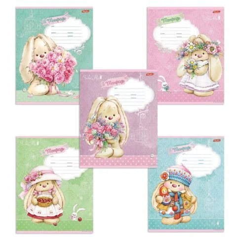 Тетрадь школьная Hatber Зайка Ми №2, А5, 12 листов, в линейку, на скрепке, мелованный картон
