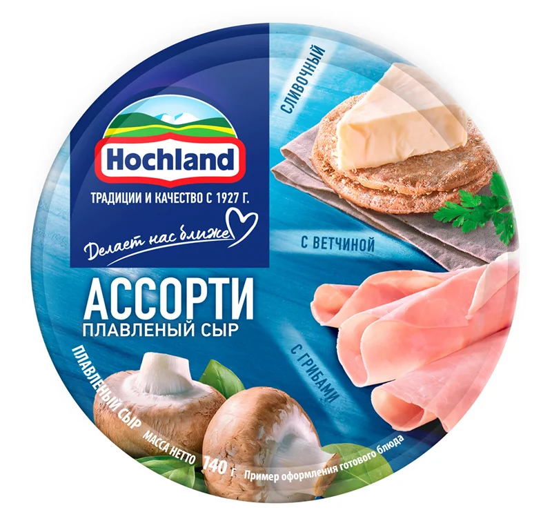 Сыр плавленый Hochland Ассорти синее 50%, 140 г БЗМЖ (без заменителя молочного жира) – это натуральный продукт, изготовленный из в...