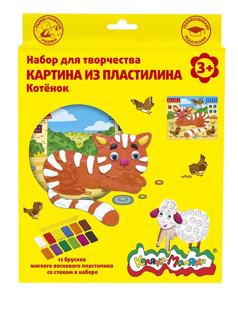 Картины из пластилина Каляка-Маляка, с удобной подставкой и 12 брусками воскового пластилина. Для занятий ребенка пластилинографие...