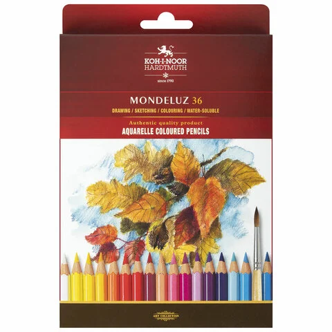 Карандаши цветные акварельные художественные KOH-I-NOOR 'Mondeluz', 36 цветов, 3,8 мм, заточенные, е