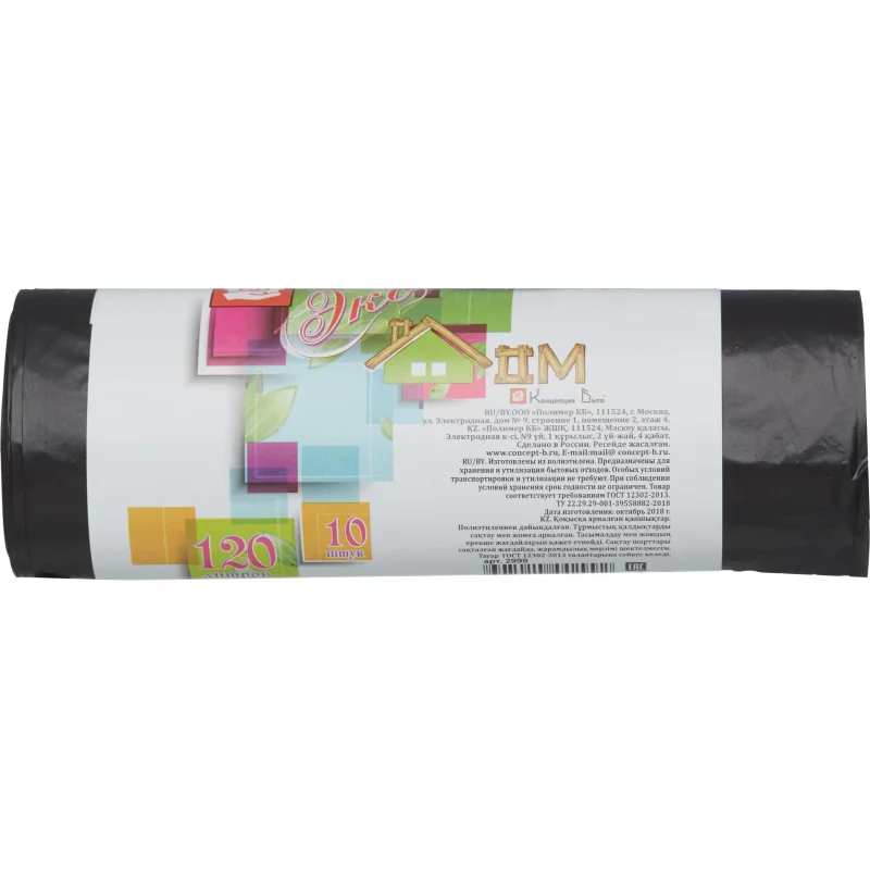 Мешки для мусора Концепция Быта Экодом 120 л черные (ПВД, 25 мкм). Подходят для легкого пластика и упаковки. Данны...