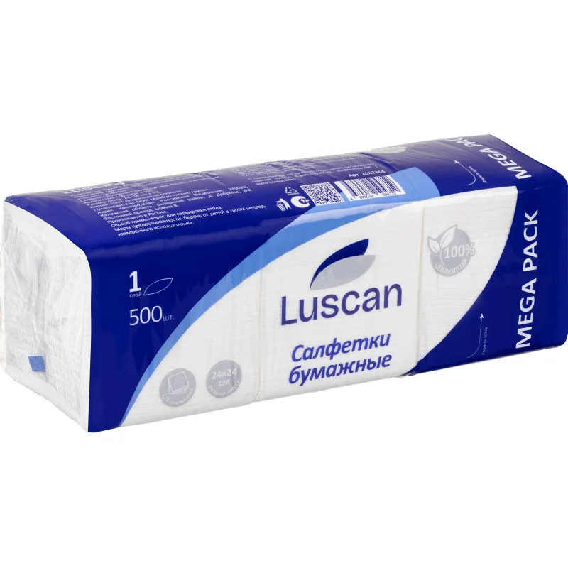 Салфетки бумажные Luscan Mega Pack 1-слойные 24x24 см белые предназначены для повседневного использования в быту или в офисе. Они ...
