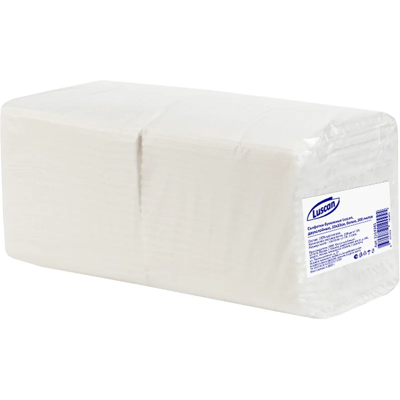 Салфетки бумажные Luscan 2сл 33х33см белые 200шт/уп