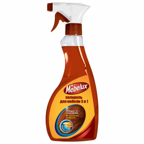 Полироль для мебели для любых поверхностей с распылителем 500 мл, MEBELUX 5 в 1, 4600104032356