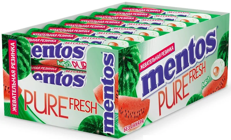 Жевательная резинка Mentos Pure Fresh вкус Арбуз – это cочные фруктовые драже жевательной резинки с жидким центром внутри в удобно...