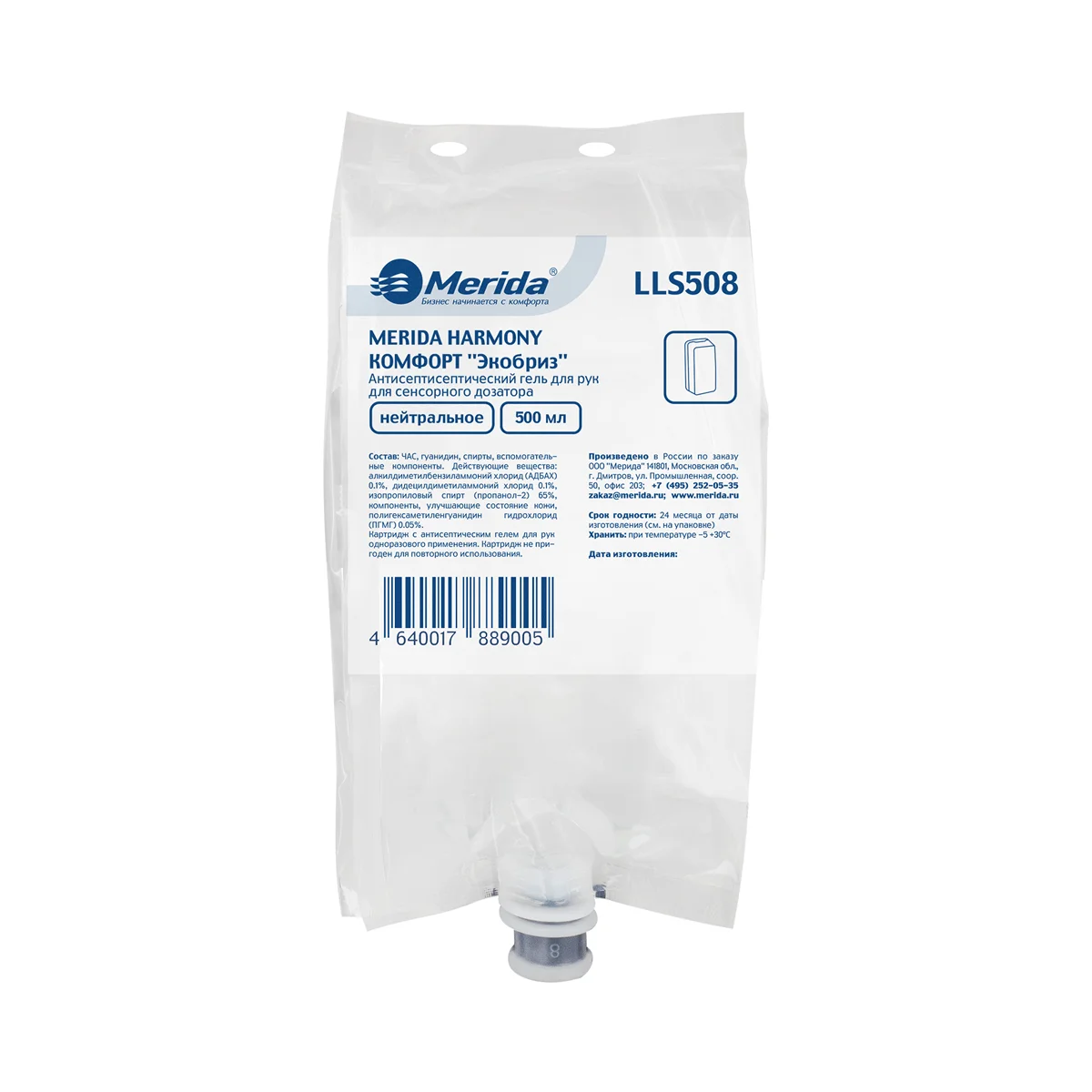 Антисептик в картридже Merida Harmony-S Экобриз LLS508, 500мл, гель
