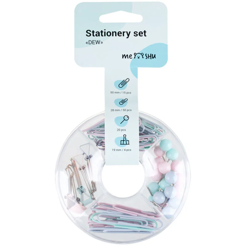 Набор канцелярских принадлежностей Meshu Dew включает в себя: зажимы 19 мм (4 штуки), скрепки с виниловым покрытием 28 мм (50 штук...