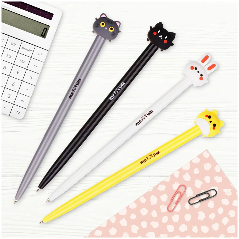 Ручка шариковая автоматическая MESHU 'Cute Friends' синяя, с топпером